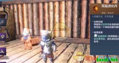 其中陨铁在陨石处开采获得,火烜角可以去打八千年石烜及万年冰烜火烜概率获取。灵狐毛皮打五千年丘狐,八千年玉狐,万年凛狐火狐概率获得。收集这些材料合成进化丹后,就能去找灵巫铁铁进化耳鼠了,非常呆萌。