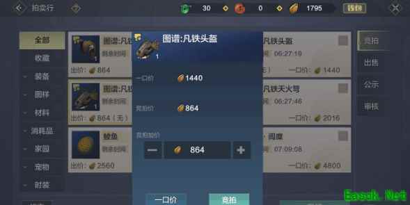 进入拍卖行后会看到竞拍界面,在首页查看或在右边筛选出想要竞拍的物品,物品左边是他人出价的价格,右边是卖家设置的一口价,点击选择竞拍的价格倍率或通过一口价直接购买,竞拍后等待拍卖物品的剩余时间查看结果。 第四,拍卖行预约竞拍购买