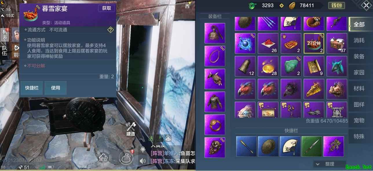 《妄想山海》暮雪家宴使用方法一、使用方法 暮雪家宴在背包中点击使用就会放置在家园中。 我们需要注意不要在封闭的环境中使用,会卡到屋顶上。 放置之后就能邀请好友食用家宴获取奖励。