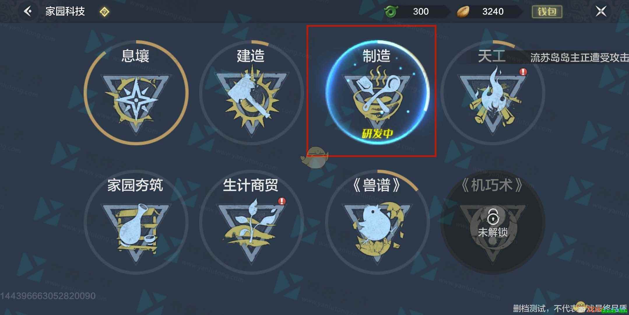 3、在家园科技界面中,我们可以看到很多建造选项,此时点击制造。