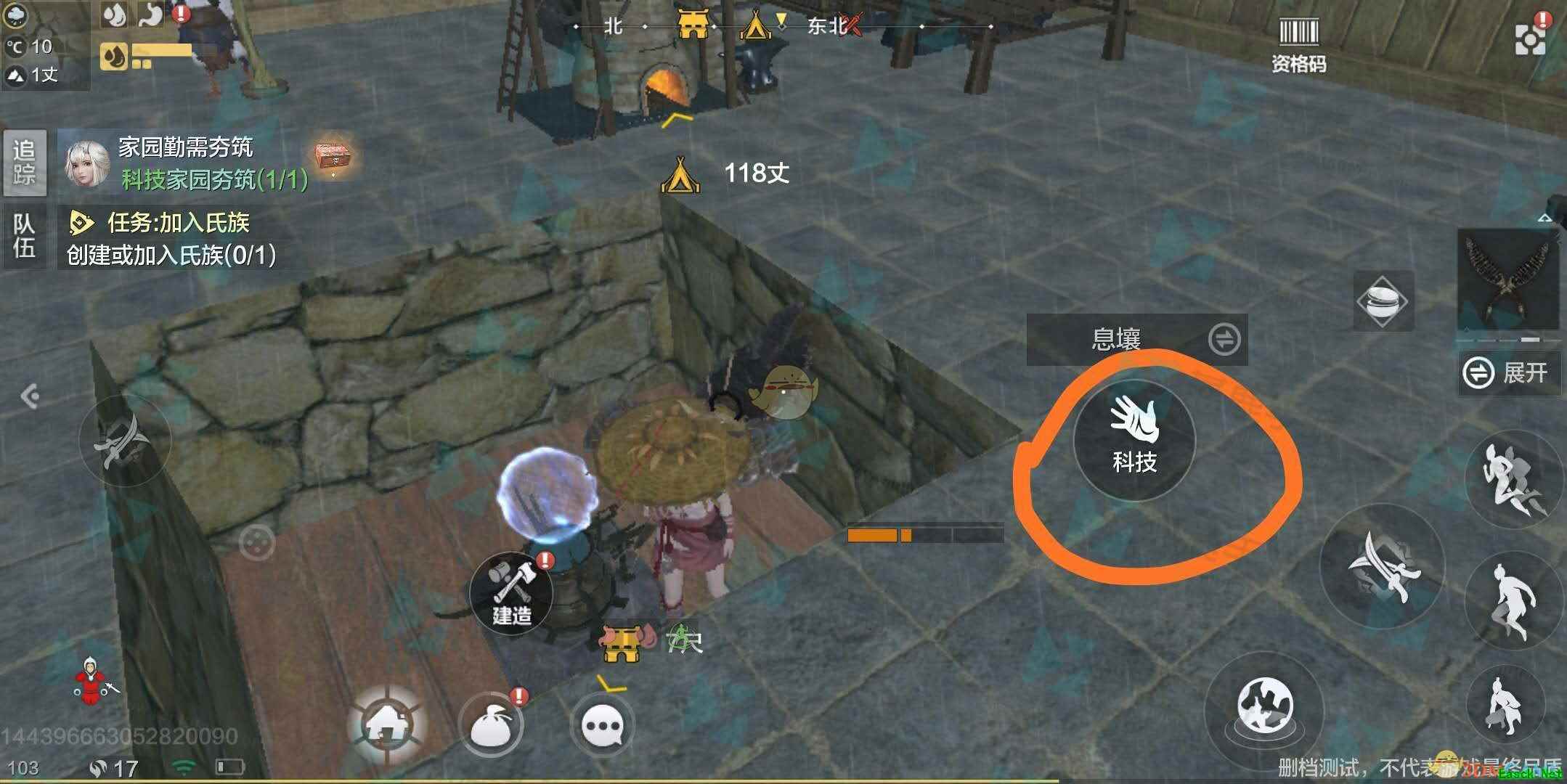 2、在家园中,靠近息壤的位置后画面中会出现科技按钮。