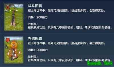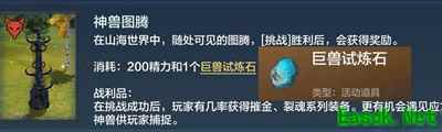 开启条件: 200精力、巨兽试炼石*1 战利品: 摧今、裂魂品质装备,有概率刷出可抓获应龙和大猩猩。 战斗图腾与神兽图腾区别如下: