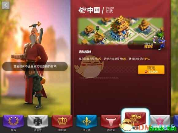 《万国觉醒》平民推荐国家文明一览一、开局中国 平民首推中国,原因如下: 1、唯独中国文明是有建筑加速(+3%)的加成。建筑速度加成在前期尤为重要,因为前期执政官的发展都离不开升级建筑物。 2、建筑速度的加成不仅大大地减少了建筑时间,还可以为您省下不少建筑加速。 3、前期的目标就是尽快把市政厅升级到23~25级,所以小编个人建议新手玩家先选中国文明。