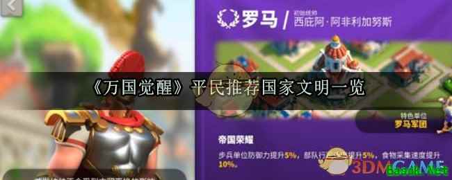 万国觉醒中不同的国家文明有独特的增益效果,对于新手平民而言选择一个合适的国家文明非常重要,对于初始文明的选择能帮助您更快地觉醒该文明的初始统帅。那么万国觉醒哪个国家适合平民玩家呢?还不知道的小伙伴快来一起看看《万国觉醒》平民推荐国家文明一览的相关内容吧。