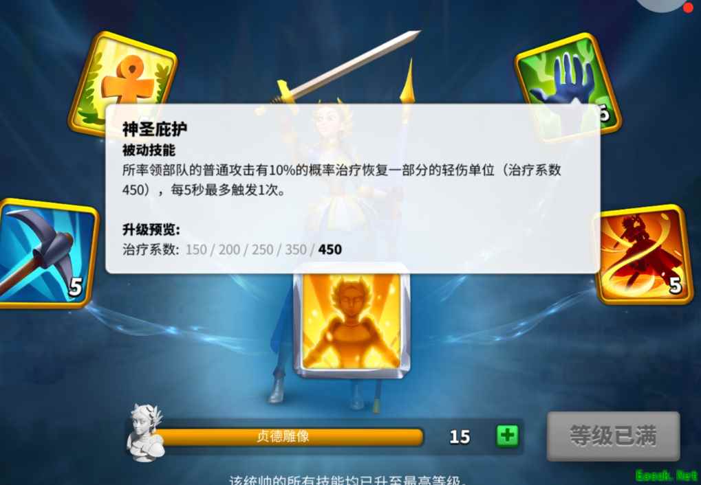 三、群狼战术 在面对敌弱我强时,我们也不要大意。可以通过群狼打法将自身伤害降到最低,因为游戏中存在夹击的时候有伤害加成。我们可以利用这一特性,保证我方队伍在敌方土地的密集性,避免敌方的高战对我们造成巨大的伤害。 群狼战术的核心在于辅助的作用,这里我建议联盟官员在作战时进行辅助的分配,利用辅助对我方部队兵种的战斗加成和治疗加成,将敌方对我方游击打法的伤害降到最低。 这里推荐将领贞德作为辅助,贞德一技能上帝的启示可以对各个兵种都产生增益效果,并且可以给附近盟军提供怒气。三技能神圣庇护可以对附近盟友提供小部分的治疗效果,是作为辅助的不二选择。群狼战术讲究部队的密集性,通过密集的推进对敌方的旗帜和要塞进行破坏。