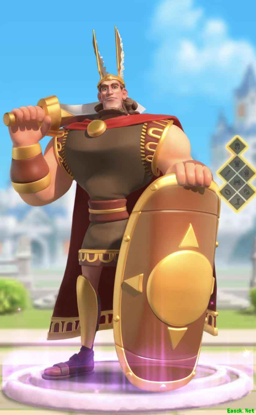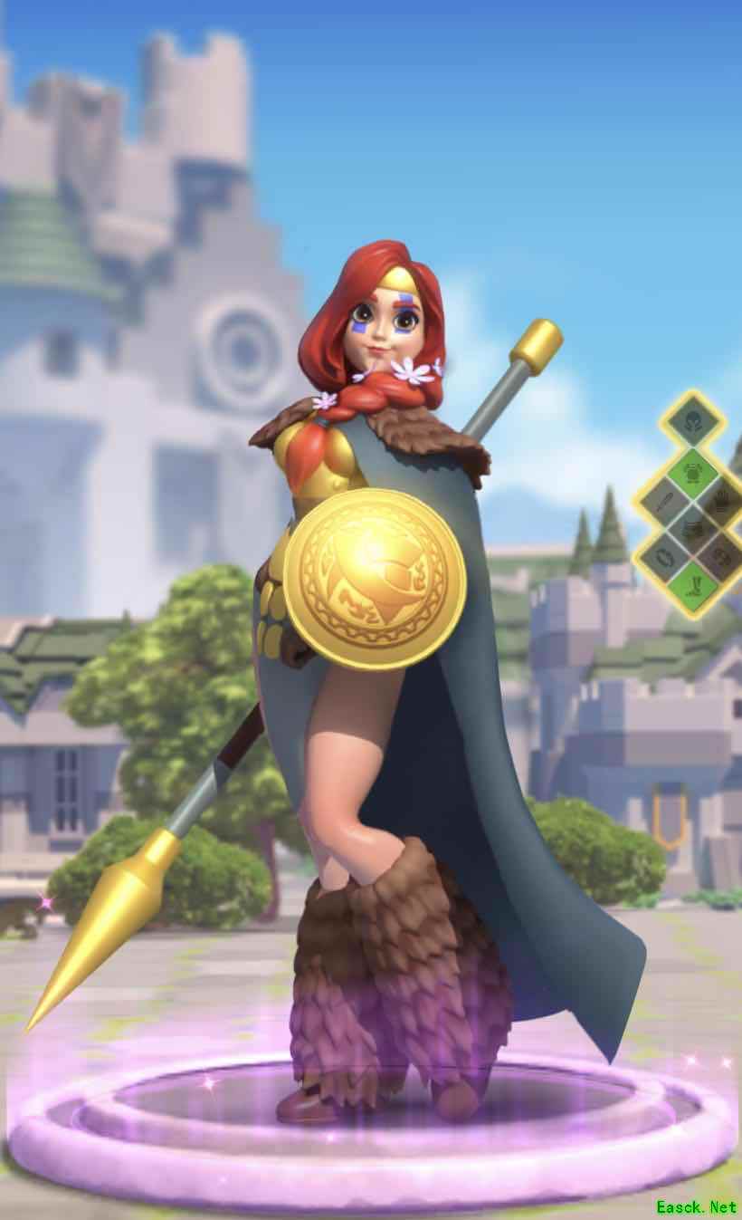 主)伏军 - 单体打出750系数伤害,减其怒100,2秒沉默无法用技能 (被)军事天才 - 弓兵+10%攻,10%移速 (被)条顿堡传奇- 担任驻防武将时,驻防部队和警戎塔+7%攻 (被)民族英雄 - 普攻+10%伤,普攻有10%机率额外获得100怒。 (觉)绝境之缚(强化伏军) - 变为单体打出1150系数伤害, 减其怒100,2秒沉默无法用技能 技能优先升级: 1 > 2 > 4 > 3 (卡1) 野战强度:✩✩✩ 驻防强度:✩✩ 攻城强度:✩ 野蛮人和中立目标强度:✩ 从技能来看,海尔曼算是紫将中伤害偏高的1150,但本身是弓兵,体质比较差,要使用的话还是要慎重考虑! 3、初始将领/布狄卡