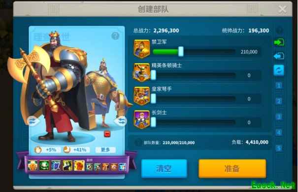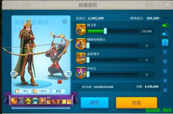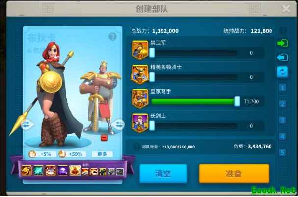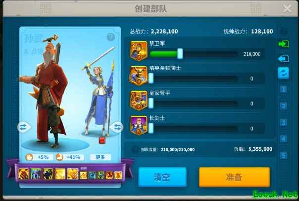 特殊关卡战术 特殊关卡指的是可以获得远征女王宝箱的十个关卡,附属于一些boss关卡,分为集结攻城关卡和驻防城市关卡。前八关,每关三星通过都有每天固定一个女王宝箱,后两关则是每关两个,属于非常重要的关卡,尽可能早通关。 集结攻城战术 集结攻城关卡第一支队伍设置成集结队,其余四支队伍不变,集结队伍兵力大致与玩家单队兵力,城堡数量有关,最高可达到单队兵力的六倍,如图,21万一支,设置成集结队就有126万