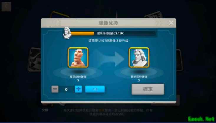 第三用来兑换,这里大家要注意,前提是同样品级之间的雕像才可以进行兑换。那么小编建议大家使用橙色统帅雕像之间相互兑换,因为这类雕像在游戏中获得难度很高,而且在途径上也不是很多,所以推荐玩家用此方式来提升橙色统帅的收集速度。