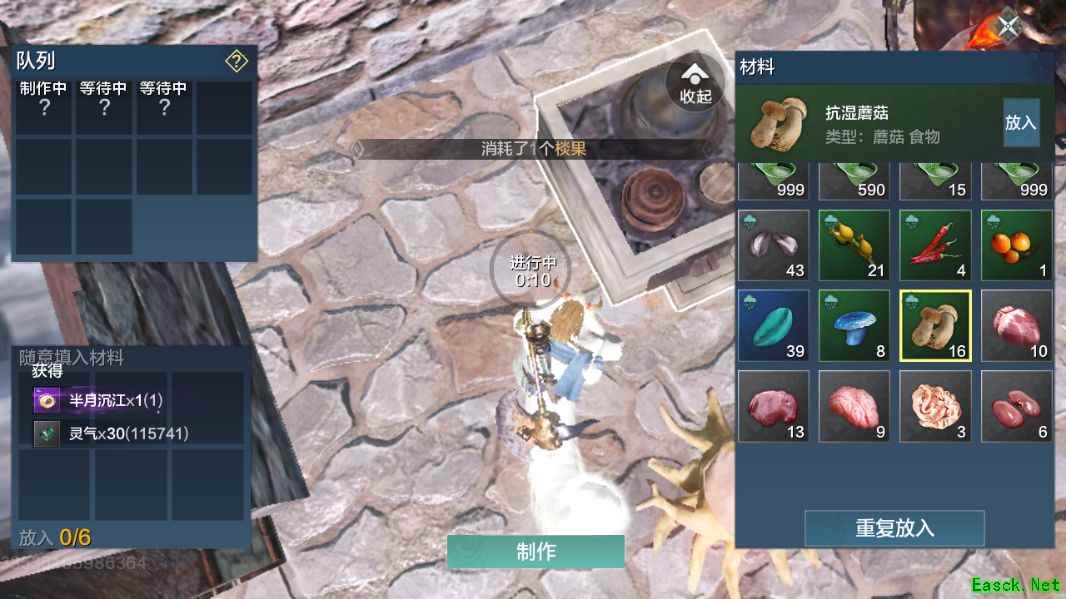 种出稀瓜后,加冰搅拌五秒得到稀瓜刨冰 2.【半月沉江】 香料+水果+水+蘑菇 烹饪5S 5S是重点,期末必考,出半月沉江