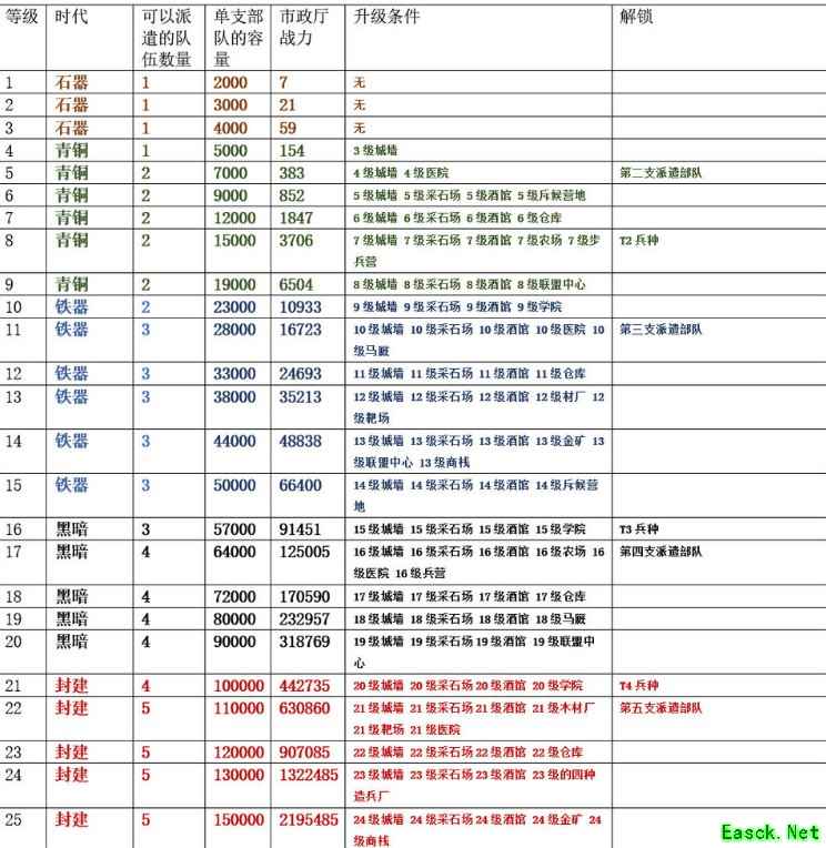 《万国觉醒》等级上限介绍1、首先市政厅等级越高越好,可以解锁更多建筑并且加强部队。 2、派遣部队变多,也就意味着更多的资源。 3、资源收入变快,游戏进度就会变快,市政厅等级越高也意味着单支部队的基础容量也会越高,在前期战斗时也是一种优势。 4、点击主城升级,会有提示,按照顺序升级就可以了。 5、所有建筑满级的前置条件就是粮食、木材、石头、金矿,有一个满的就行。 6、目前的最高等级是25级,升级的条件都差不多,都是根据提示需求升级。