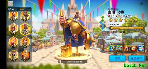 理查一世搭配副将推荐理查一世(主)+查理马特(副) 这是一个很经典的组合,双查在前期王国内堪称无敌存在。 优点:有回血又有护盾,步兵的属性高,可以配合查理的反击伤害,被群殴也不怕。 缺点:机动性不足,容易站着挨揍。 适用场合:野战。