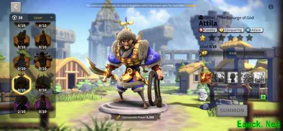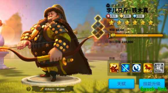 「阿堤拉+ 旃陀罗笈多」 这个组合我想了很久到底是该谁当主将,还是觉得让阿堤拉当原因首先是进攻天赋对于集结向效果很好,愈战愈勇,其次是因为阿堤拉大招持续4 秒,陀罗持续3 秒,所以当中可以有2秒的交集叠加,使伤害进一步提升。