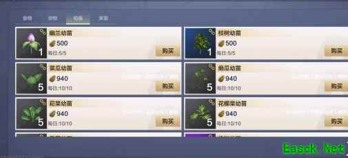 点击种子键,可以将低等级的菜苗合成高等级的,例如胡荽、鹅仔菜等。