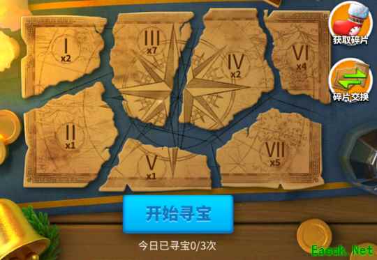 集齐7张不同的藏宝图碎片可以得到1张完整的藏宝图。藏宝图上绘制了宝藏所在的地点,根据藏宝图即可寻找宝藏所在位置。 找到宝藏的位置后,派遣斥候挖掘即可获得宝藏。斥候完成挖掘后,宝藏将通过邮件发送。 执政官们在王国中可以看见其他执政官正在寻觅的宝藏,但对应宝藏只有持有对应藏宝图的执政官才能获得。 开始寻宝后,如果在8小时内没有找到宝藏,即为寻宝失败,藏宝图和宝藏都将消失。 每位执政官每天仅能寻宝3次。若寻宝失败,次数将不会返还。 二、藏宝碎片获取
