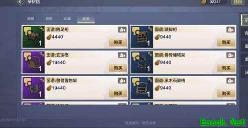 这些柜子的格数可以说是非常之高,但是因为要氪金啊,所以难倒了很多平民玩家。 那么接下来呢,我就给大家说一下,怎么样不氪金也能够提高单个柜子存储量的方法。 家园灵器貔恘台打开之后,杂货店最后一个分类,您可以在这里通过使用贝币,购买一些高级柜子的配方。