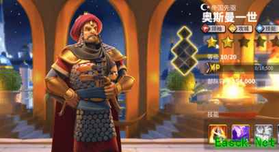 很多人第二个会去觉醒乙之文德或者贞德,感觉好像乙之文德配孙武也可以打步兵,贞德的BUFF很强打架能给人加状态,其实到实战中你就发现了,有了理查没人会带乙之文德了,而贞德敢在团战中出现绝对被人首先打爆头,最重要的一点,打KVK***的大佬也不可能天天带五队兵出去干架的,至于平民,能一队部队从头打到尾就很不错了,平民的资源跟加速根本不可能让你能带超过两队的兵出去挥霍的,至于选贝利的原因不仅仅以为骑兵跟机动天赋可以扫田,还有一个最重要的原因,贝利的第三个天赋战术迂回,对生命低于50%的部队伤害加成最高25%,打仗的时候满地都是残血的部队,拿贝利来追杀真的是再合适不过了 3.奥斯曼一世