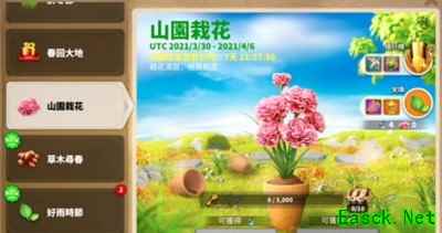 活动时间:2021/3/30-2021/4/7 1、玩家可以通过打挑战活动玩法的箱子获取花种,种植获得花瓣,消耗宝石获取露水。 2、并使用花种,花瓣以及露水来兑换奖励,奖励包括金币、皮肤等物品。 3、并且还可以参与登陆签到活动以及山园栽花等抽奖活动, 4、签到参与抽奖还可以获得材料以及图纸等奖励,快去试试。 5、山园栽花活动时间为2021/3/30-2021/4/6。