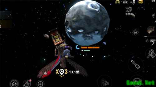 4、到达太空看到白色巨大星球后就可以登陆了。
