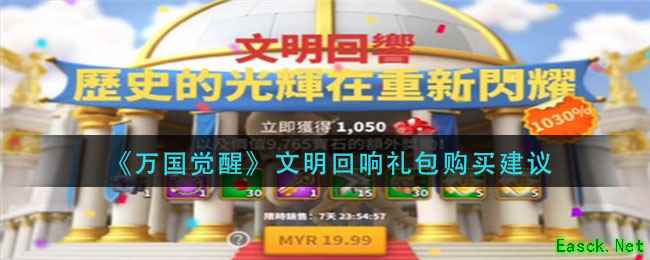 《万国觉醒》文明回响礼包购买建议1、文明回响礼包是近期上线的历史回想主题活动的限时礼包。 2、目前国服文明回响礼包的价格是30元,其中会有很多的道具。 3、比如购买后即可得到1050宝石以及价值9760宝石的道具奖励。 4、该礼包相较于其他的普通的礼包,性价比还是相当不错的。