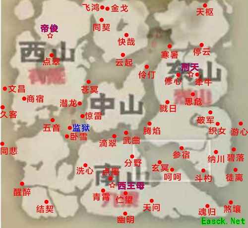 星球风景点位图(47个星球,3个boss,1个监狱) 没有清晰的大地图,官网也找不到凑合看吧。 手动描的,位置有一点偏差,但是不会太大,如果找不到那就是飞的高度的问题。 去风景点,点击纵目,首次即可获取获得灵气、脂玉和贝币奖励。交付还有属性加成,和活跃度奖励。