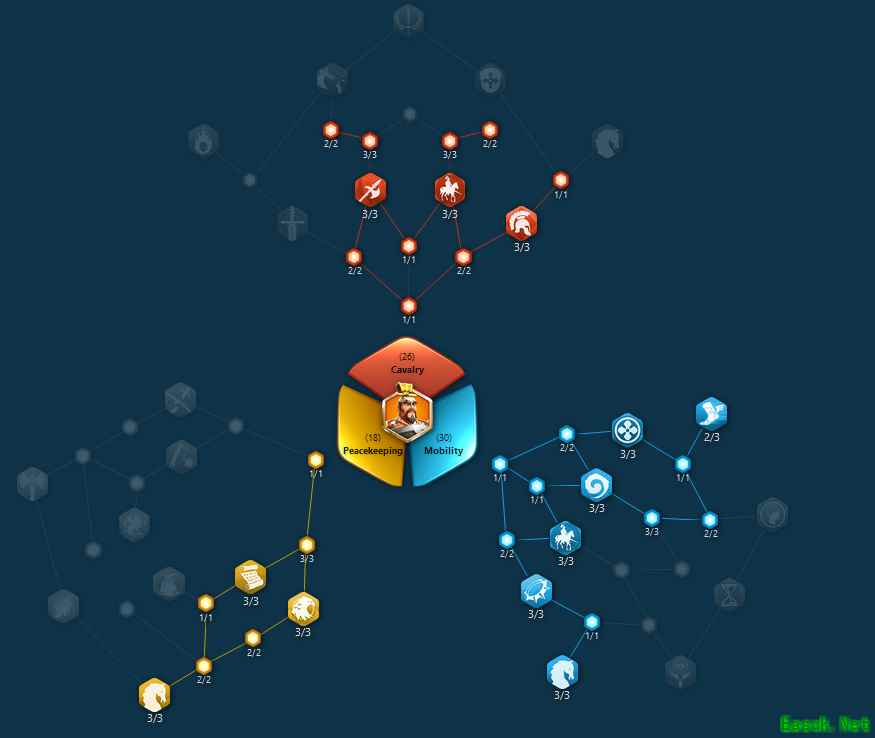 在开服90天之前,骑兵金奖组合只有源义经+曹操,野战的话,曹操不适合主将,机动打野天赋损失了很多三围属性,正面的时候伤害低且脆皮。所以只有源做主将,而天赋一般选择主技能,副骑兵,这样最大化爆发。通过测试,主技能天赋是强于主骑兵天赋的。当然,主骑兵天赋会适当获得一点移速优势,可以在团战中不断拉扯。 同样,该天赋也适合佩拉约。佩拉约是唯一有驻防天赋的武将,但是骑兵一般不太适合驻防,所以也只有技能+骑兵或者骑兵加+技能两个选择。 拜巴尔一般作为副将,天赋不是很关键,一般用做贝利撒留的副将,天赋的话随便点点,可以走技能路线。 骑兵的天赋其实并不是特别固定,根据自身不同的需求和喜好,都可以有不同的加点方法,没有一劳永逸的百搭天赋,灵活多变才是王道。 以上就是小编整理的关于《万国觉醒》骑兵天赋推荐的全部内容,更多游戏攻略请持续关注易采游戏网! 本文内容来源于互联网,如有侵权请联系删除。 |