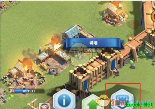 2、随后,在城墙界面的右下角,轻按保卫功能键;