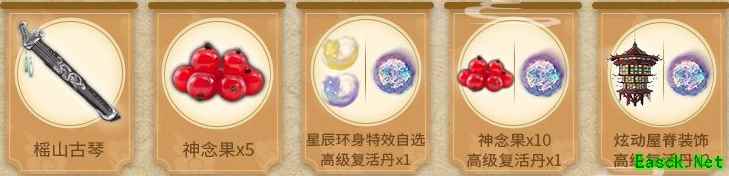 第一阶段:【榣山古琴】(古琴玩具,有宫商角徵羽五音技能,带上它,你就是公子长琴本琴!) 第二阶段:【神念果x5】 第三阶段:【星辰环身特效自选包】(内含两个色系的星辰主题环身特效玩具,玩具可以挑选其中一款获取)+【高级复活丹x1】(可复活甲级坐骑或侍从) 第四阶段:【神念果x10】+【高级复活丹x1】 第五阶段:【炫动屋脊装饰】(也就是琉璃悬阁灯啦)+【高级复活丹x2】 以上就是小编整理的关于《妄想山海》足迹值作用介绍的全部内容,想获得更多相关游戏攻略可以关注手游网。 本文内容来源于互联网,如有侵权请联系删除。 |