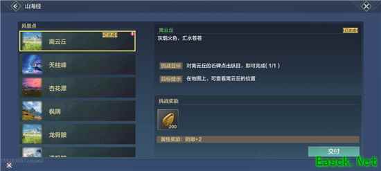 风景点作用介绍 1、在游戏中玩家解锁激活风景点可以得到脂玉和灵气奖励。 2、在玩家每天激活数量超过20个,就只能得到脂玉奖励。 3、玩家每激活一个山海经中的任务点即可领取生命和防御属性,以及200贝币。 以上就是《妄想山海》星眠海位置介绍的全部内容了,更多手游攻略请关注手游网! 本文内容来源于互联网,如有侵权请联系删除。 |