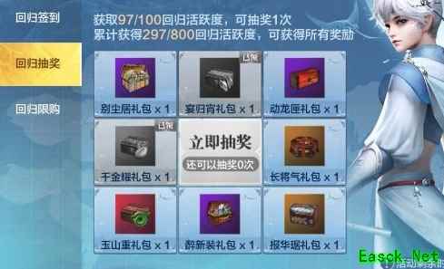 十二、回归抽奖 除了每日签到领取奖励,回归的旅者们还可以参加本咪为大家打造的回归专属抽奖活动~ 活动期间旅者们通过完成活跃度任务积累回归活跃度,每达到一定的回归活跃度,就可以增加一次抽奖机会。 奖池中的奖励抽到后将显示【已领】,不会再次抽到哟~也就是说,大家只要累计达到一定的回归活跃度,就有机会获得奖池中的所有奖励~是不是很棒呢!抽奖奖池里的奖励也是会根据旅者等级升级的哦~等级越高的旅者奖励越丰富,大家一定不要错过了! 这里咪姐要提醒一下旅者们,抽奖机会只有在回归活动期间(8天之内)才可以使用哦~大家记得及时抽奖。