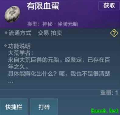 2、有限血蛋能够孵化随机一个百年巨兽。