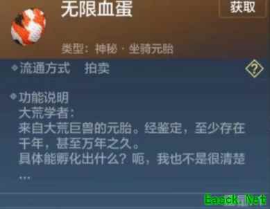 《妄想山海》有限血蛋会孵出异兽介绍1、无限血蛋可以随机孵化出千年或者万年巨兽。