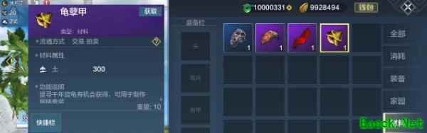 《妄想山海》龟孽甲获取方法介绍1、小伙伴们可以击败千年旋龟。当然了,该巨兽的强度很高,没有一定的基础和实力是难以完成挑战的,可以选择团队协作; 2、千年旋龟的位置上,一般是可以在海边与之遭遇,但还是较为看运气。