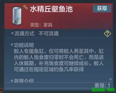《妄想山海》水精丘壑鱼池获取方法一、鱼缸功能说明 水精丘壑鱼池 鲛人专属鱼缸,仅可将鲛人养至其中,缸内的鲛人饱食度归零时不会死亡,而是进入休眠期,补充饱食度可继续成长。 鲛人可通过在指定区域钓鱼几率获得。