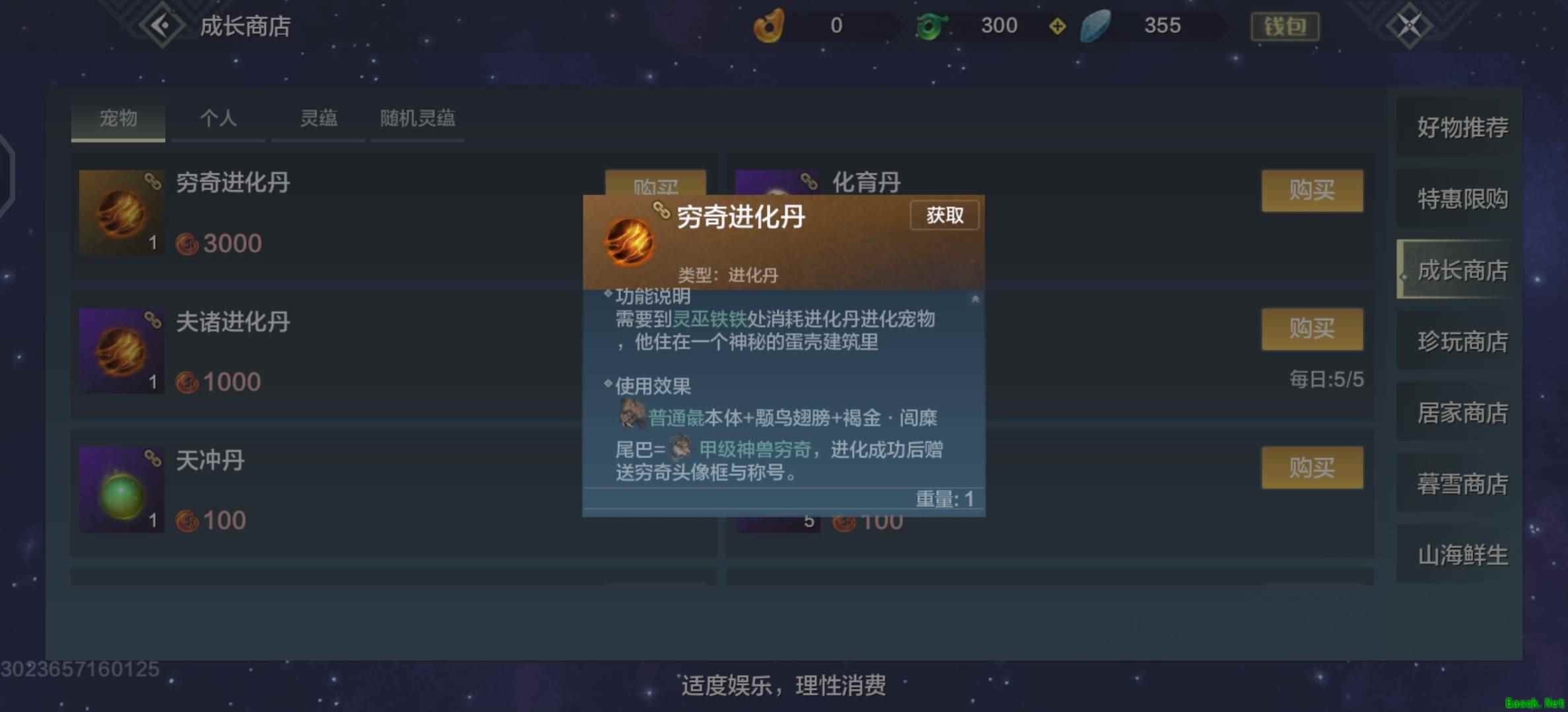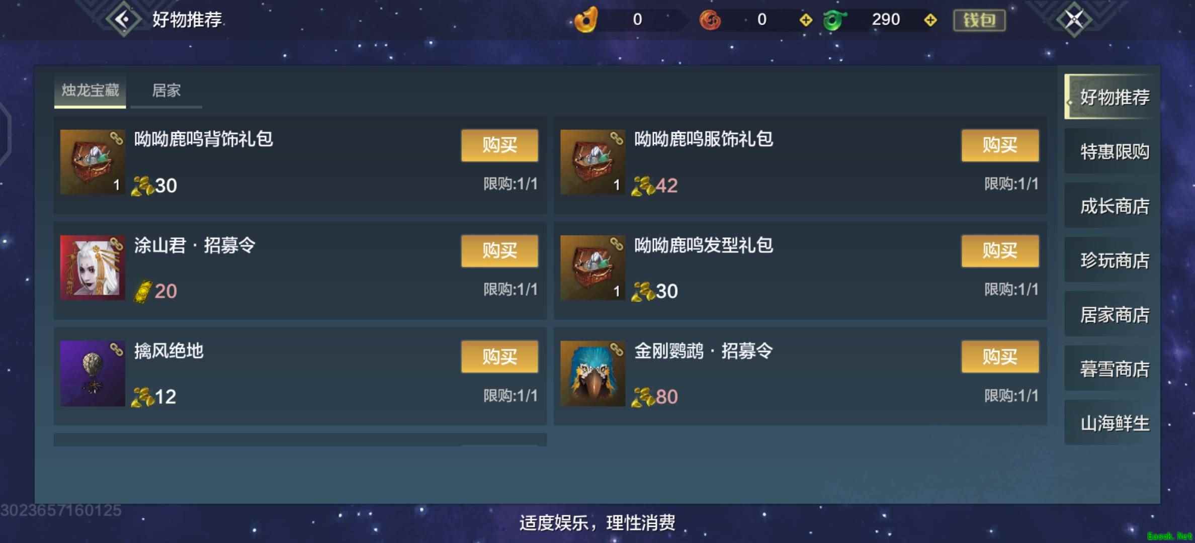 2、奖励一览 大荒妖神券:可兑换极品侍从一涂山君! 稀有侍从:金刚鹦鹉!并成后可单挑百年! 龙鳞碎片:可兑换助助鹿鸣时装礼包皎然意 (男)或林深见鹿(女) 。 高级玩具:搞风绝地:热气球带你领略山海好风光! 此外,还有4级灵蕴、侍从技能书、星宿、宠物成长。贝币等各类宝物!