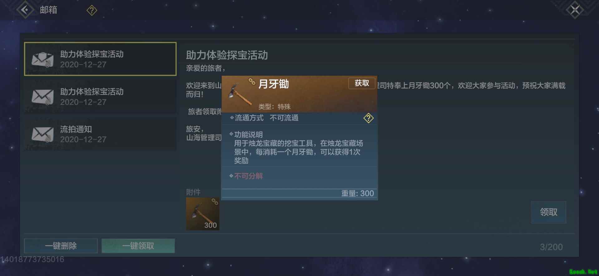 在烛龙宝藏场景中,每消耗一个月牙锄,可以获得1次奖励。