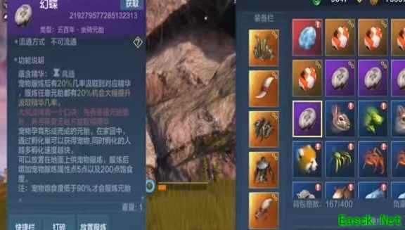 2、幻蝶捕捉 百年异兽,挑战很简单,能力过的去的单刷是没有问题的,有一些简单的装备基础就行。 找到异兽幻蝶后通过战斗消耗其血量,等到残血的时候,更换捕捉器来捕捉就可以获得幻蝶的异兽蛋了。之后通过家园进行孵化,就可以获得幻蝶。