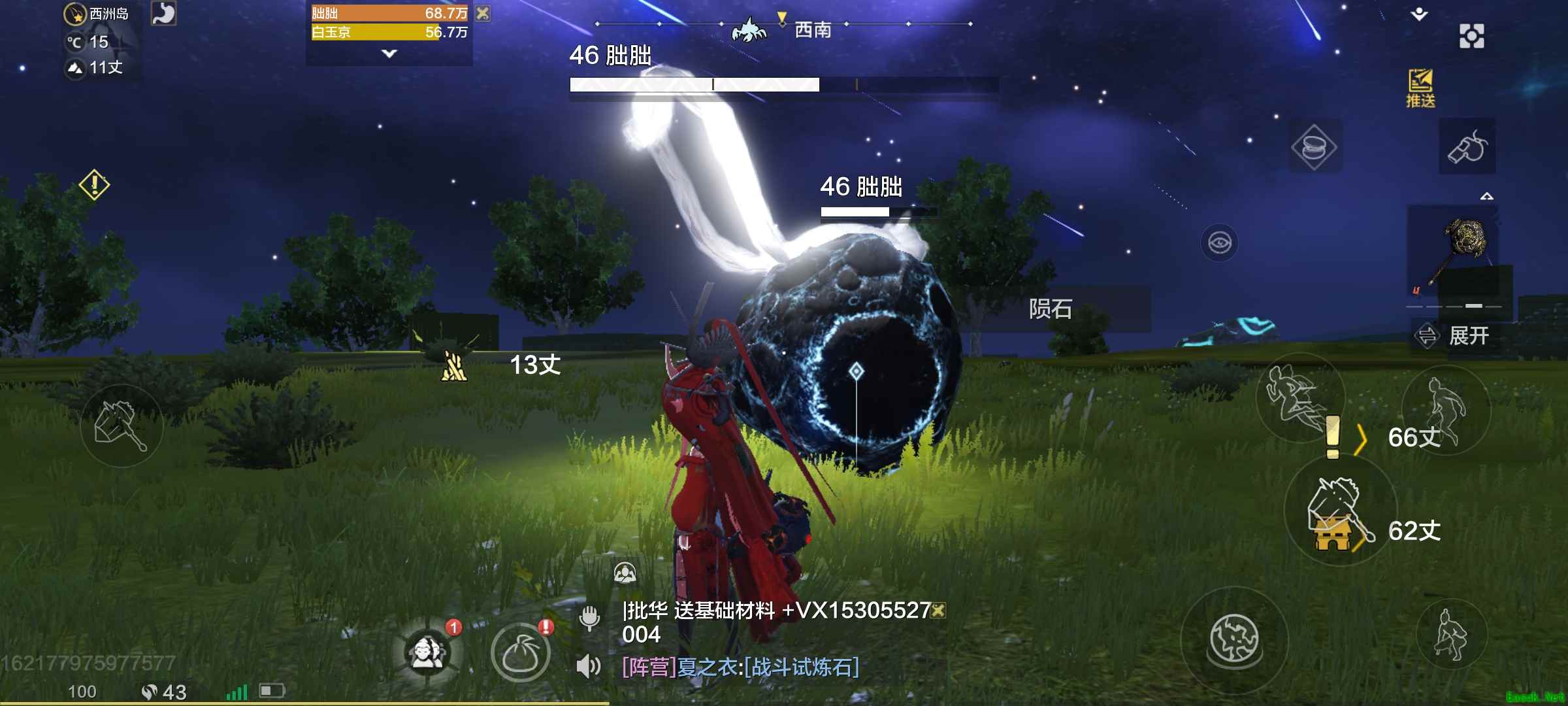 陨石是一种从天上掉下来的矿石,一般会在特定天气里出现(也存在掉下来了没被别人挖掉的情况)大部分都是晚上有流星雨的时候概率掉落。 陨石掉下来的时候跟天上普通的流星也是有区别的,流星尾焰会比普通的流星大,颜色也更淡一点,速度也慢,方向也不同。 陨石本体也比别的矿石大,整体有裂缝,会发光。 以上就是《妄想山海》陨石获取途径介绍的全部内容了,更多手游攻略请关注手游网! 本文内容来源于互联网,如有侵权请联系删除。 |