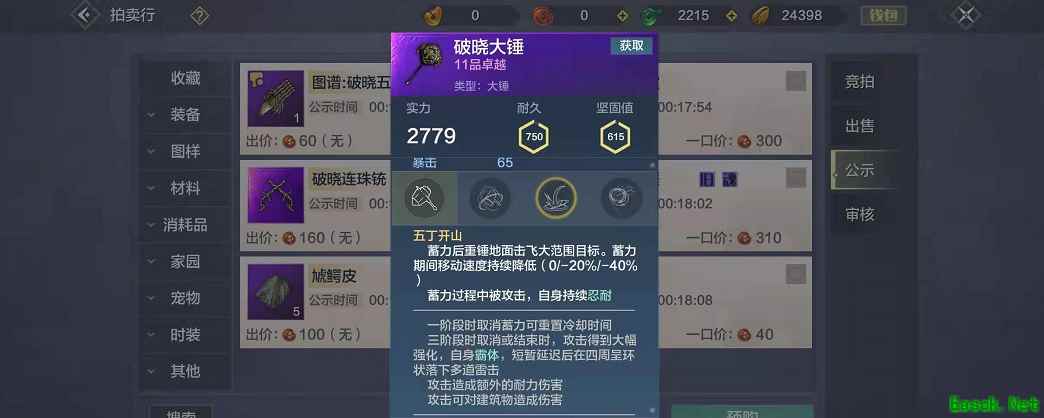 《妄想山海》大锤技能搭配推荐一、技能推荐 大锤比较推荐搭配“重光”、“五丁开山”、“闾阎扑地”等之类的技能,之所以推荐这三种技能主要是因为它们的技能伤害高、施法比较快、而且释放简单,非常适合“大锤”这样攻击性高但攻击速度较慢的武器,不过游戏中想要获得这三本技能书还是有点难度的,有兴趣的话可以去拍卖行看一看。