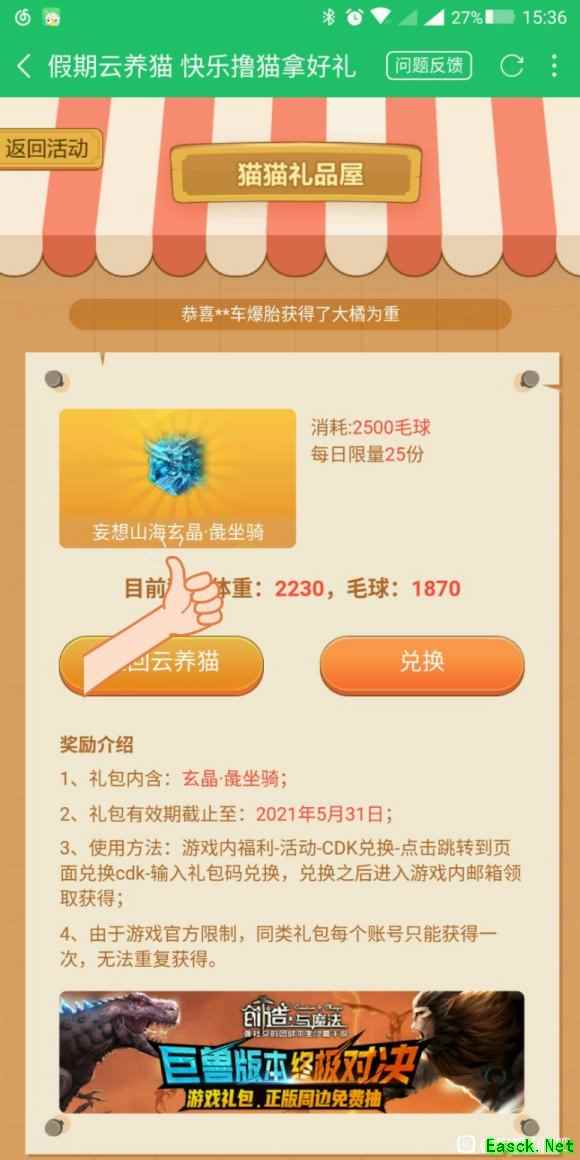《妄想山海》玄晶彘获取途径介绍1、妄想山海玄晶彘是好游快爆的活动奖励。 2、玩家们需要在好游快爆里参与活动才能够领取玄晶彘。
