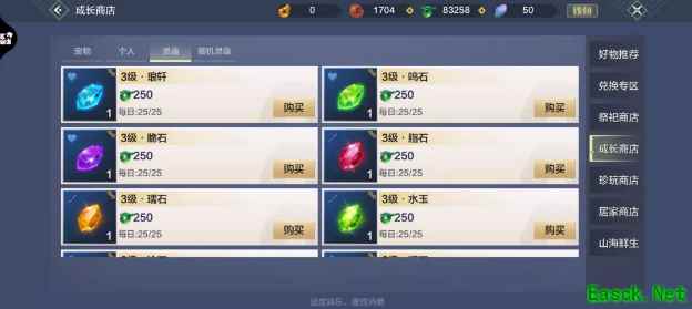 游戏中可以通过系统商店-『成长商店』支付一定数量的脂玉来获得自己所需的灵蕴;也可以在氏族商店消耗一定数量的氏族贡献购买;另外挑战山海幻境、boss等也可以获得灵蕴。