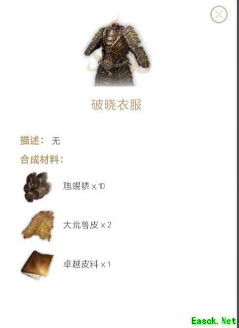 妄想山海破晓装备怎么获得1、制作获得 玩家可以前往锻造台,消耗指定的装备图纸及制作材料直接制作破晓装备; 破晓衣服的制作材料有:虺蜴鳞x10,大荒兽皮x2,卓越皮料x1。