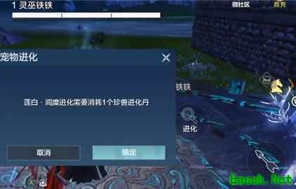 宠物在身边后,点击进化便会收到消耗进化丹的提示,点击确定按钮。