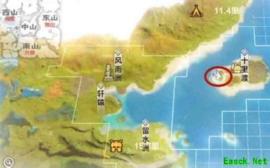 南山的灵巫铁铁位置在地图右上角异人村附近,有个狐狸图标。在十里渡所在岛屿的左边靠海的一个祭坛上。玩家们只需要在小岛靠海的地方四处转转,很容易就能找到灵巫铁铁。灵巫铁铁是一个非常重要的NPC,玩家只有找到了这个NPC之后才可以进行夫诸的合成。