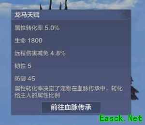 《妄想山海》龙马资质介绍资质 攻击资质:60 防御资质:60 生命资质:60 天赋