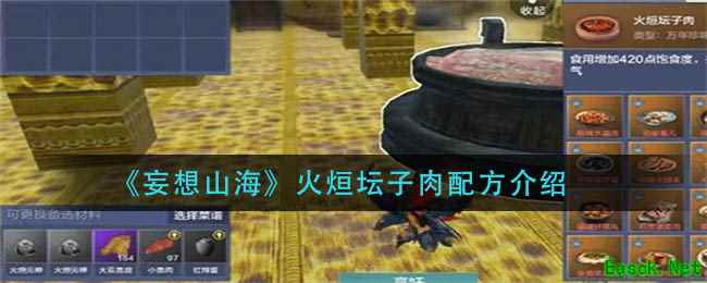 在妄想山海游戏中,制作火烜坛子肉需要玩家收集,火烜原神+火烜原神+大荒兽皮+小兽肉+红辣酱这些材料。下面小编给大家带来《妄想山海》火烜坛子肉食谱配方,小伙伴们一起来看看吧。