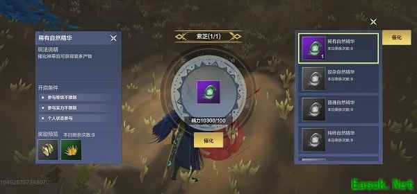 使用自然精华(不是木灵精华)催化可获得灵气。每日10次,品质越高的精华奖励越多。 自然精华:种植果蔬类植物概率获得,即貔貅台出售的可以合成的幼苗。 2、神草祝余