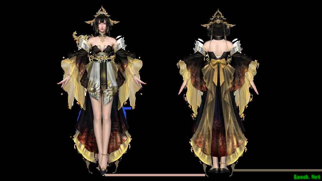 《妄想山海》虎虎生威新春时装介绍本次推出了橙品火树银花系列!黑金的配色添加了一份奢华的同时,更多了一份低调内敛的美!各位旅者不要错过哦! 火树银花·女外观原画(以游戏内实装效果为准)