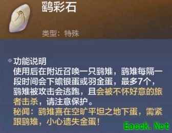 1.野生鹞雉位置是不固定的,大家可以在探索大世界时可能会偶遇野生鹞雉,喂食黑暗料理可以使其孵蛋,野生鹞雉孵出的蛋没有归属,玩家可将鹞雉骑乘到安全的区域再投喂。野生鹞雉孵出的蛋品质会比以往的家养鹞雉弱一些哦。 2.除此之外探索大世界时可能会偶遇迷路的外卖小哥,交付绛云露后外卖小哥将给你美味佳肴以表感谢。 以上就是《妄想山海》野生鹞雉位置一览,更多游戏攻略请持续关注手游网! 本文内容来源于互联网,如有侵权请联系删除。 |