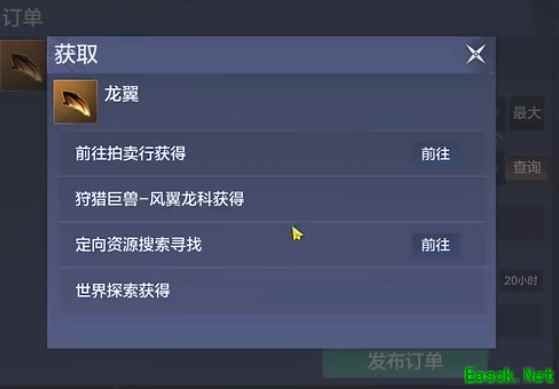 2、这个材料可以通过拍卖行、狩猎风翼龙以及定向资源搜索寻找和世界探索获得。