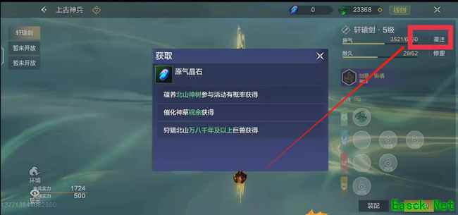 3、最后可获得原气晶石,使用这个对轩辕剑进行升级。